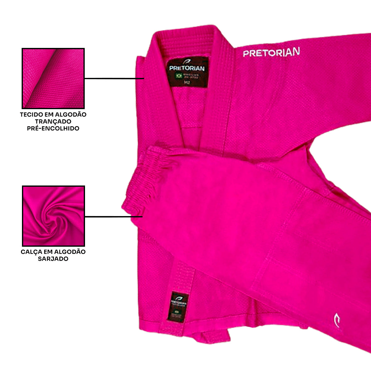 Bordados: logotipo Pretorian e etiquetas bordadas.